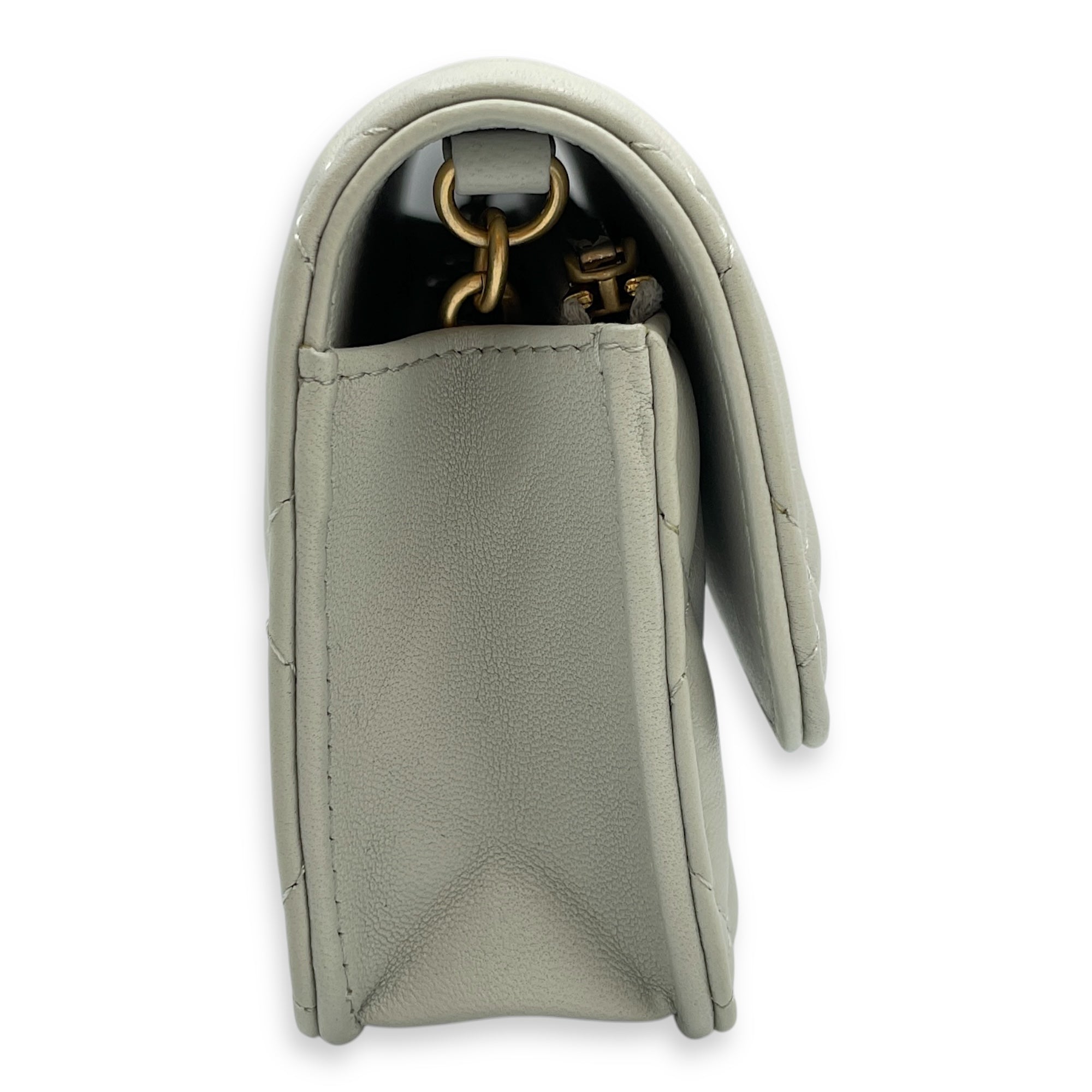 Phone Holder Light Grey Crossbody Bag in Lambskin, Gold hardware