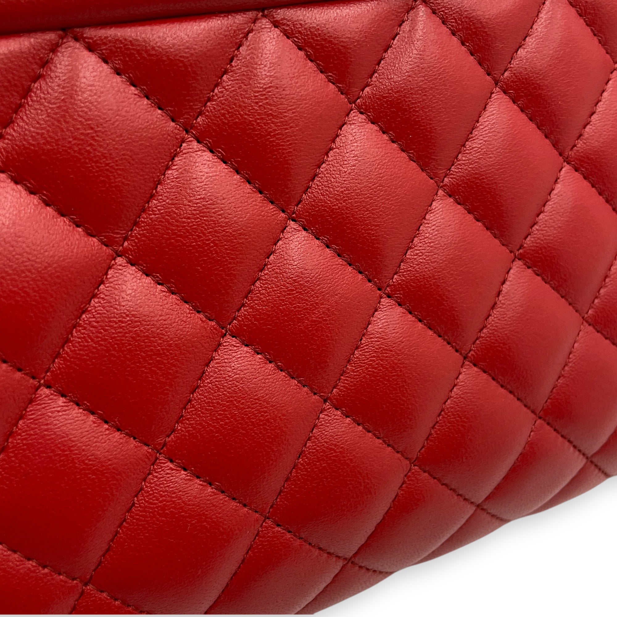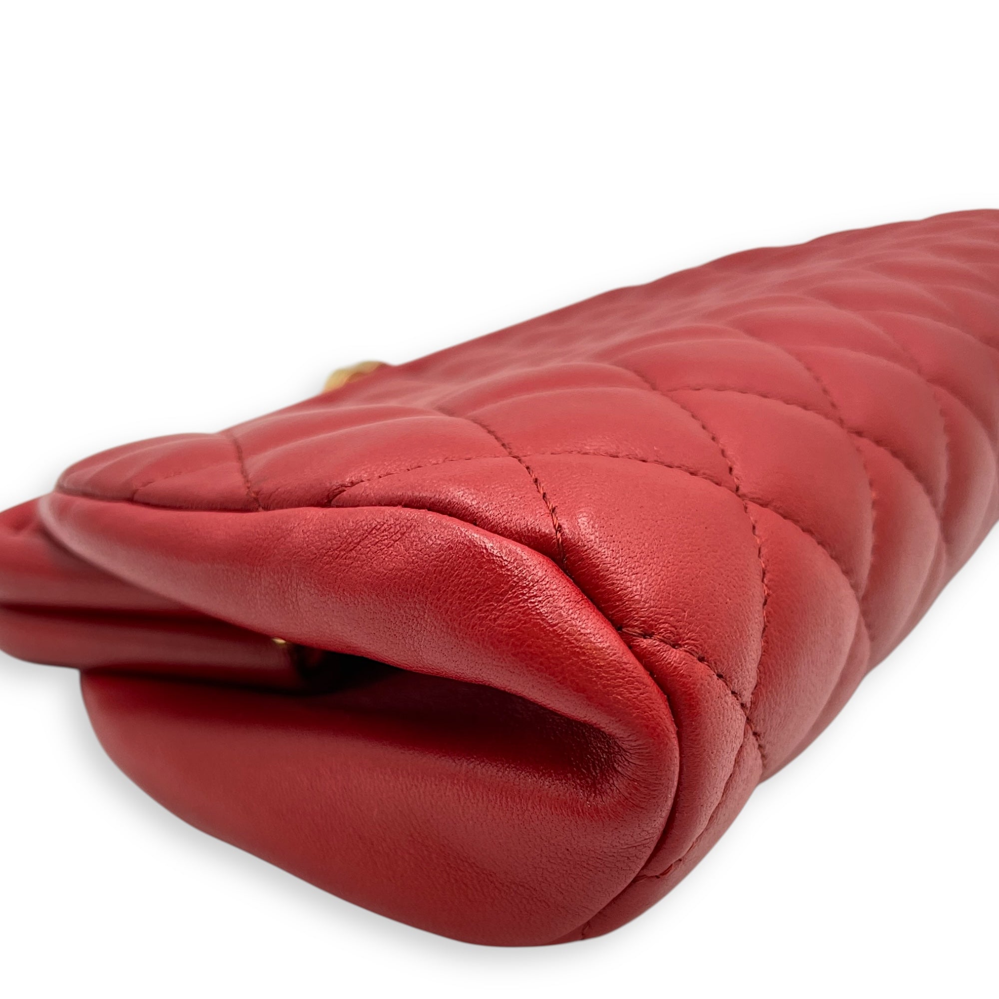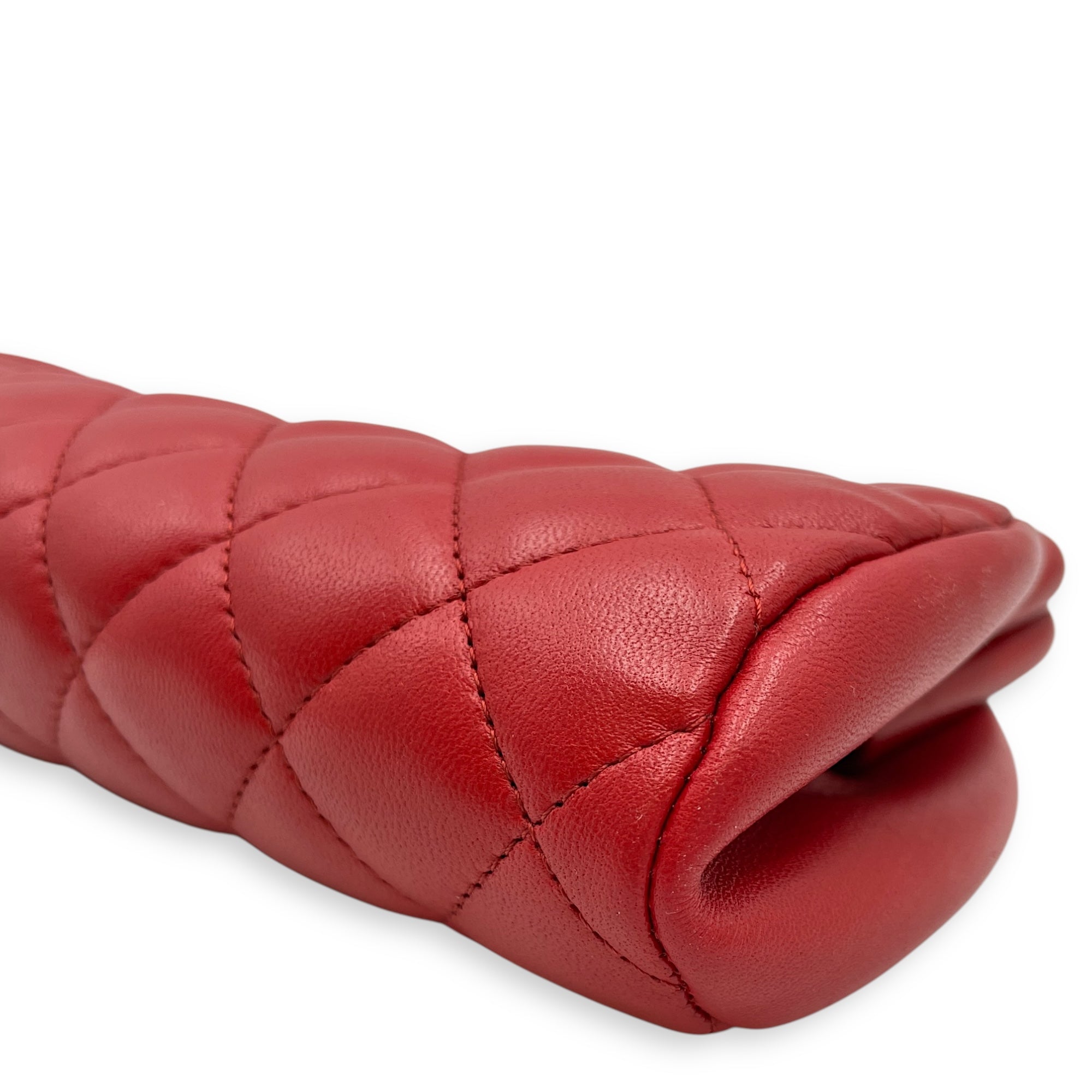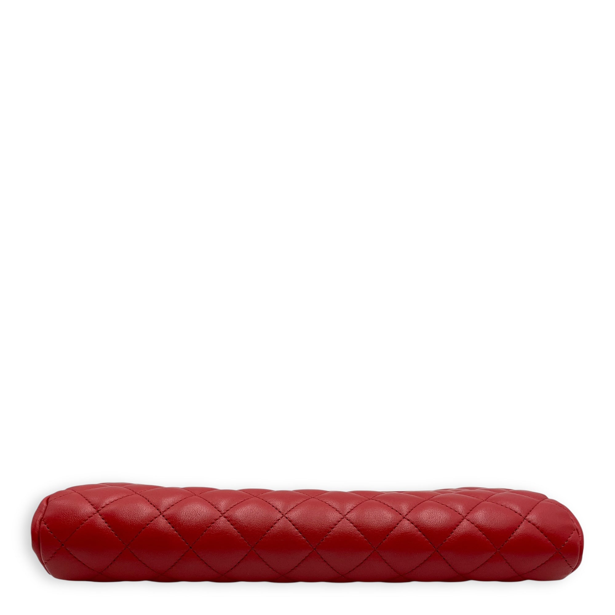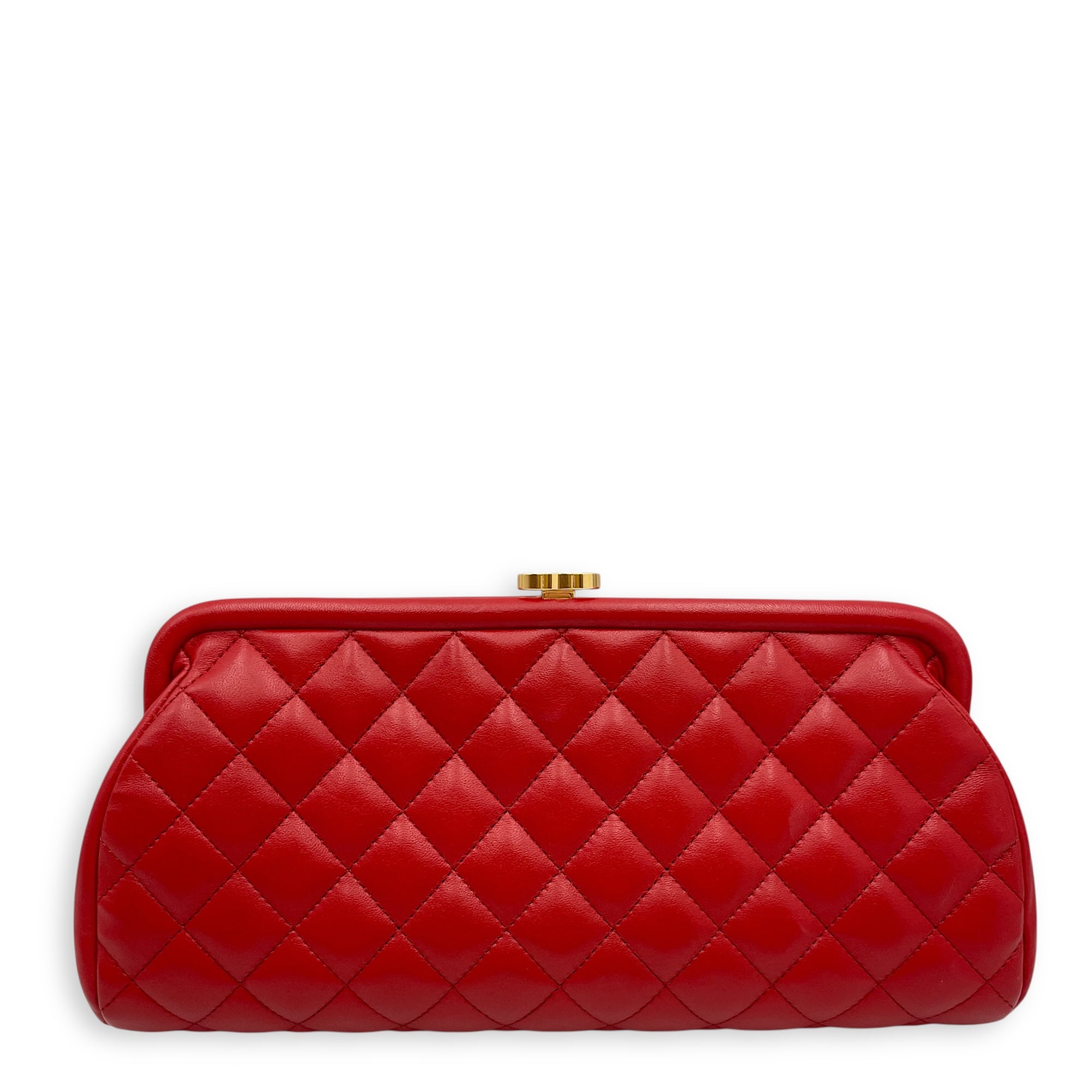 Quilted Timeless Red Clutch in Lambskin, Gold hardware