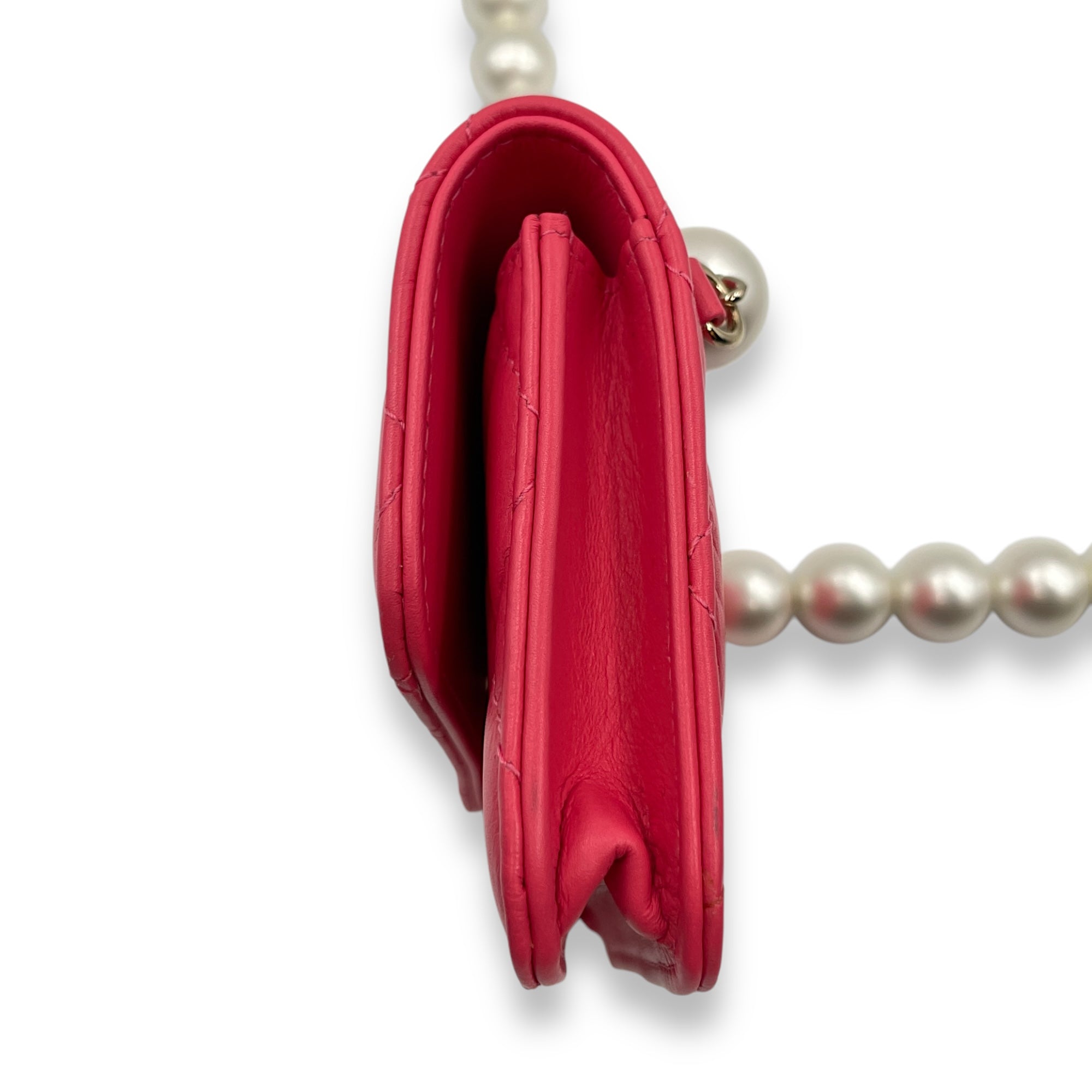 Quilted Vanity With Pearl Strap Mini Pink Crossbody Bag in Lambskin, Pearls, Gold hardware